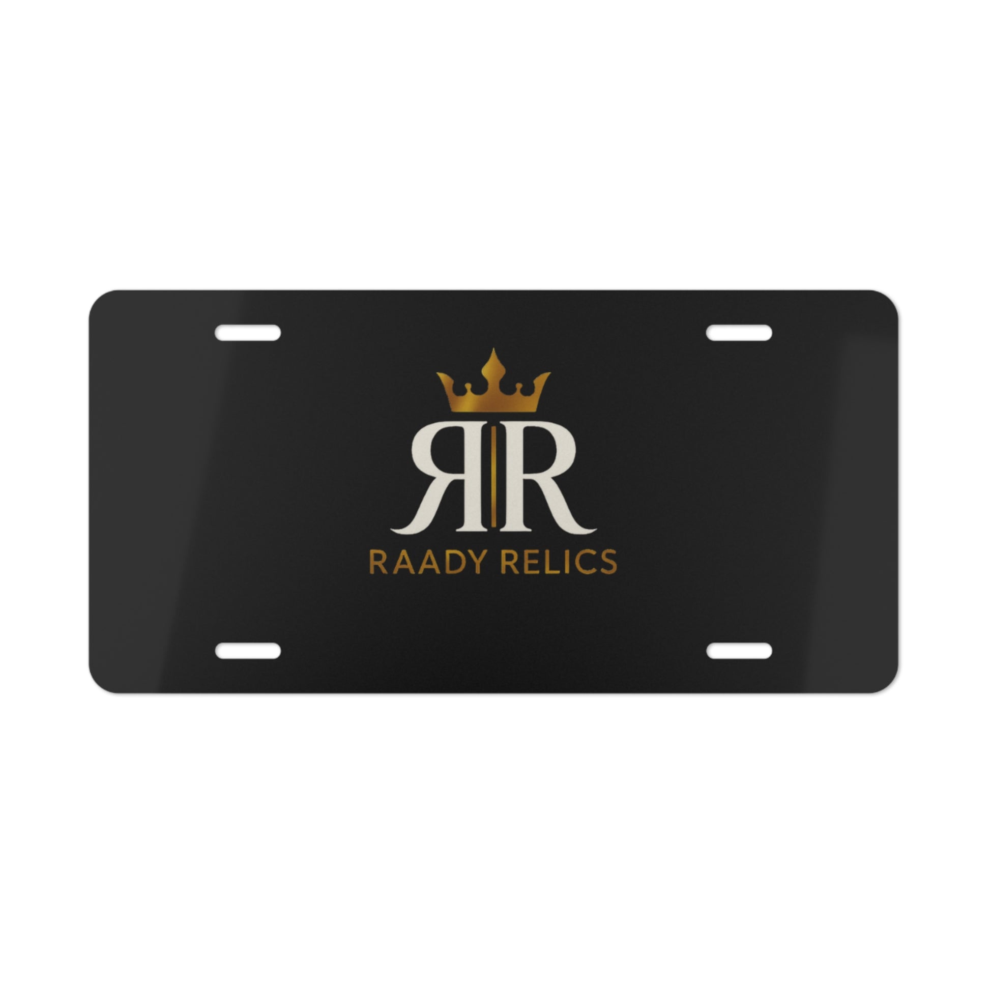 Vanity Plate — Raady Relics Logo License Plate (Black/Brushed Metal)